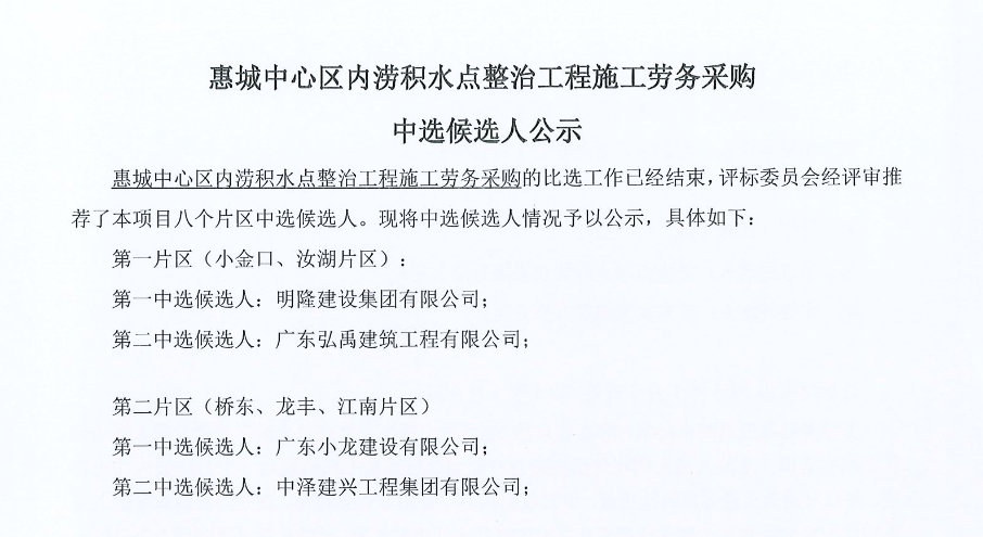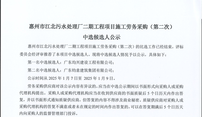 惠州市水電建筑工程有限公司勞務(wù)供應(yīng)商庫擴庫評審結(jié)果公示……